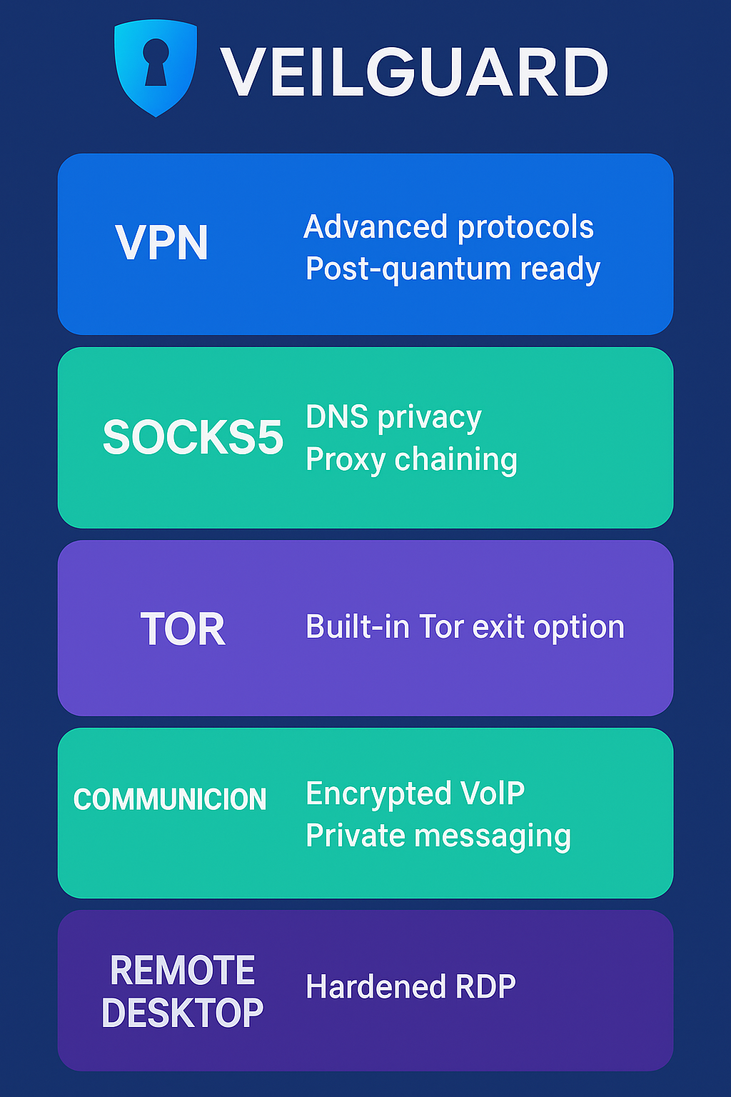 Obsessed with freedom, anti-censorship and privacy, VeilGuard is different than a regular, consumer VPN. It is a platform designed for privacy, efficiency, security and stealth. Multiple layers enable VeilGuard to work beyond the bounds of heavily censored countries, corporations, or firewalls. Stealth features include: